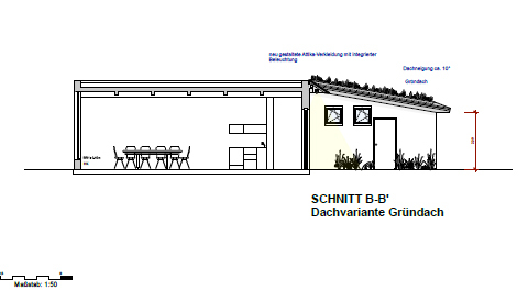 Ein neuer Anbau wird auf der Fläche der bisherigen Nebenräume in Holzständerbauweise errichtet.