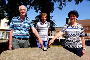 Eine symbolische Spende übergab der Ev. Kirchenbauverein Gaiberg an die Ev. Kirchengemeinde in Form eines Mini-Elektromotors (v.l.): KBV-Rechnungsführer Dr. Martin Mühleisen, KBV-Vorsitzender Martin Boeckh und Elke Peters, Vorsitzende des Ev. Kirchengemeinderats.