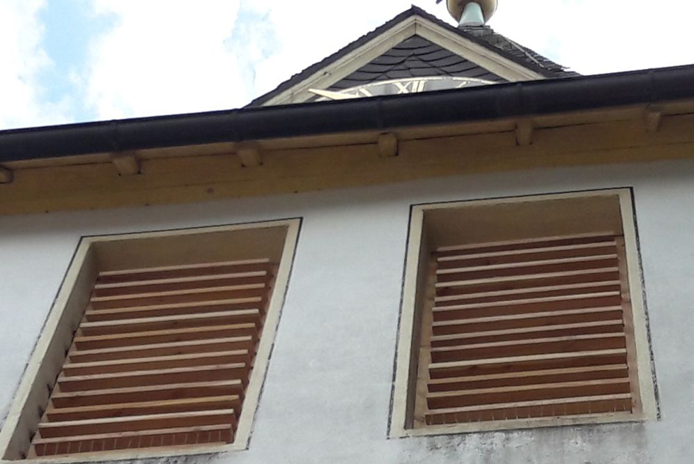 (10.07.20) Endlich ist es soweit! Nach mehreren Jahren des Zuwartens hat der Kirchengemeinderat die Initiative ergriffen und nach Genehmigung durch den Evangelischen Oberkirchenrat, dem Glockensachverständigen Dr. Kares und dem Rechnungsamt den Umbau der Glockenstube vorangetrieben. In den letzten Tagen wurden die neuen Schallläden aus Lärchenholz angeliefert. Sie sollen noch diese Wochen eingebaut werden. Sie sollen die Schall-Emissionen beim Glockengeläut und beim Stundenschlag entsprechend der TA Lärm reduzieren und den Klang der Glocken optimieren.
