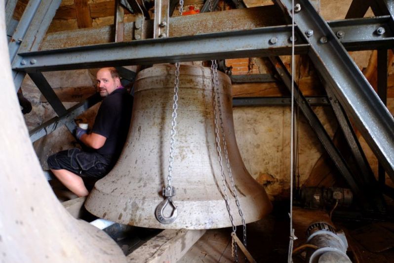 (05.08.2020) Nach dem Einbau neuer Schallläden in den Turm der Kirche und weiterer Austauschteile im Glockenstuhl und an den Glocken wurden die Glockenmotoren neu programmiert und einjustiert. Jetzt läuten die Glocken wieder wie gewohnt.