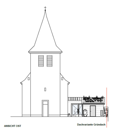Der Gemeinderaum wird saniert, verbleibt aber in seinen Außenmauern auf der bestehenden Grundplatte.